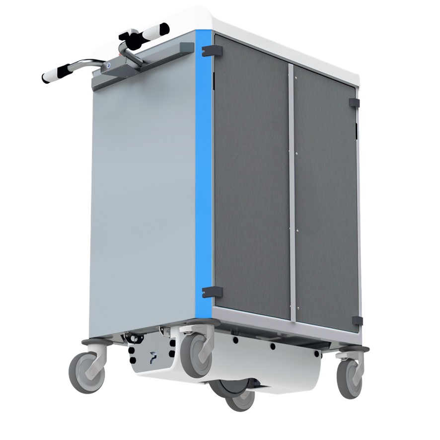 La motorisation EasyMoove® des chariots Neop® Clean réduit l’effort de poussée et aide à prévenir les TMS.