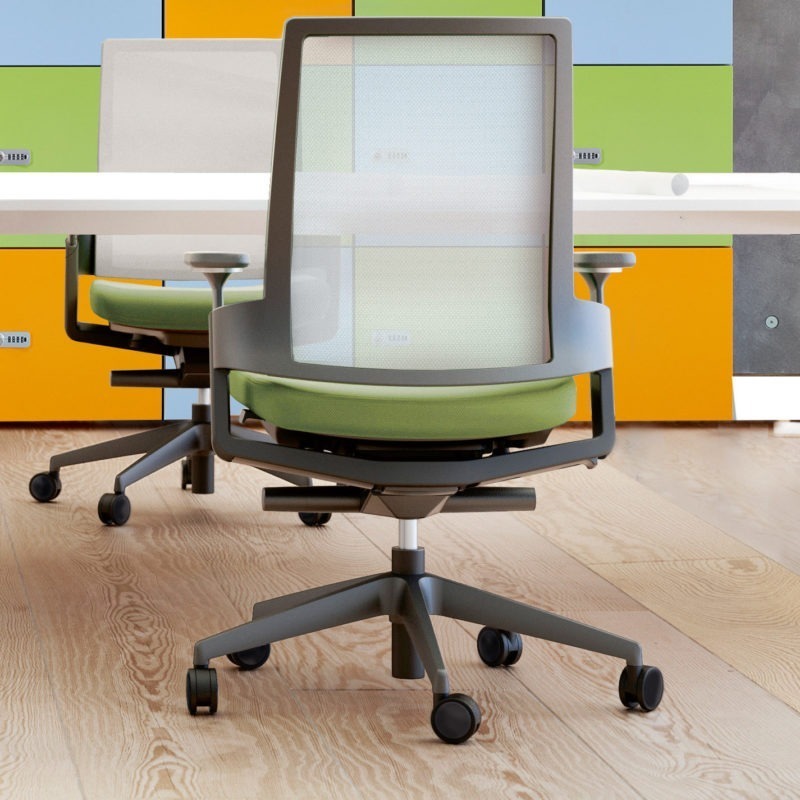 - Le mécanisme de pivotement latéral permet un mouvement unique en son genre, le dossier et le siège restent liés dans ces mouvements.